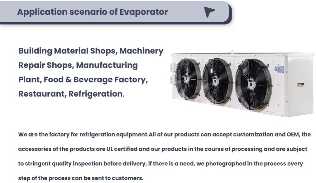 Shell: High-quality steel plate applied with low-temperature resistant powder with strong corrosion resistance performance. Aluminum plate or stainless-steel shells can also be customized. All tube plates are made of 2.0 thick aluminum alloy plates in order to minimize the possibility of internal leakage caused by heat exchange copper tube wearing ascribed to thermal expansion and contraction.
